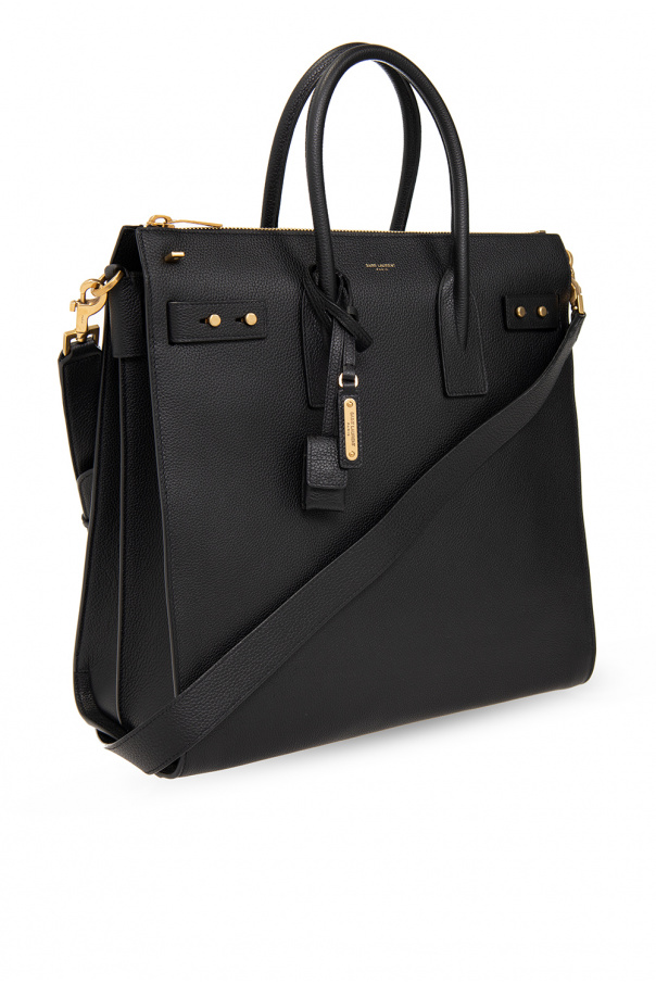 Black ‘Sac De Jour’ shoulder bag from Saint Laurent. Crafted from calf leather, this design secures with a zip and showcases an embossed gold-tone logo on the front, a removable padlock and logo charm, two half-round handles, a detachable and adjustable shoulder strap, gold-tone metal hardware and one internal compartment with one zip pocket and two slip pockets.