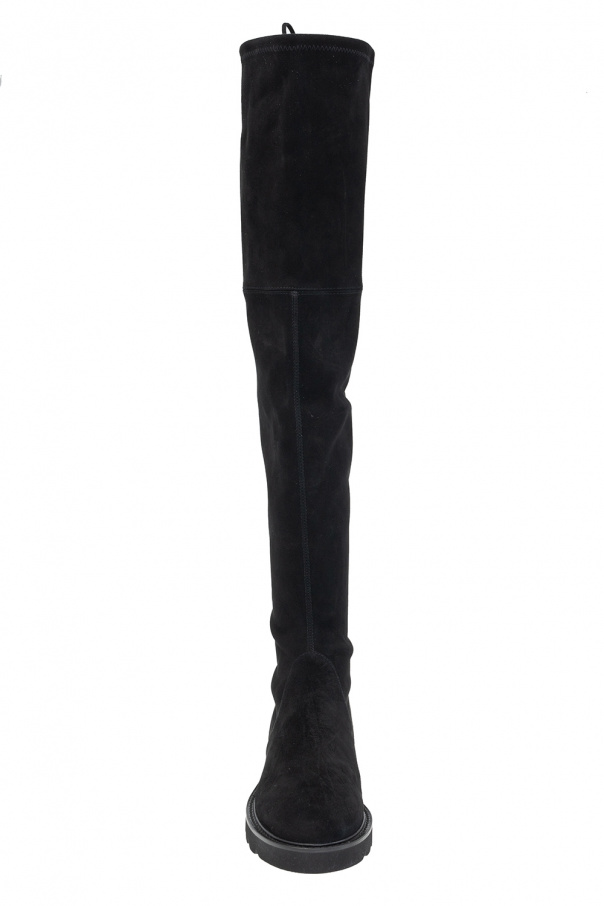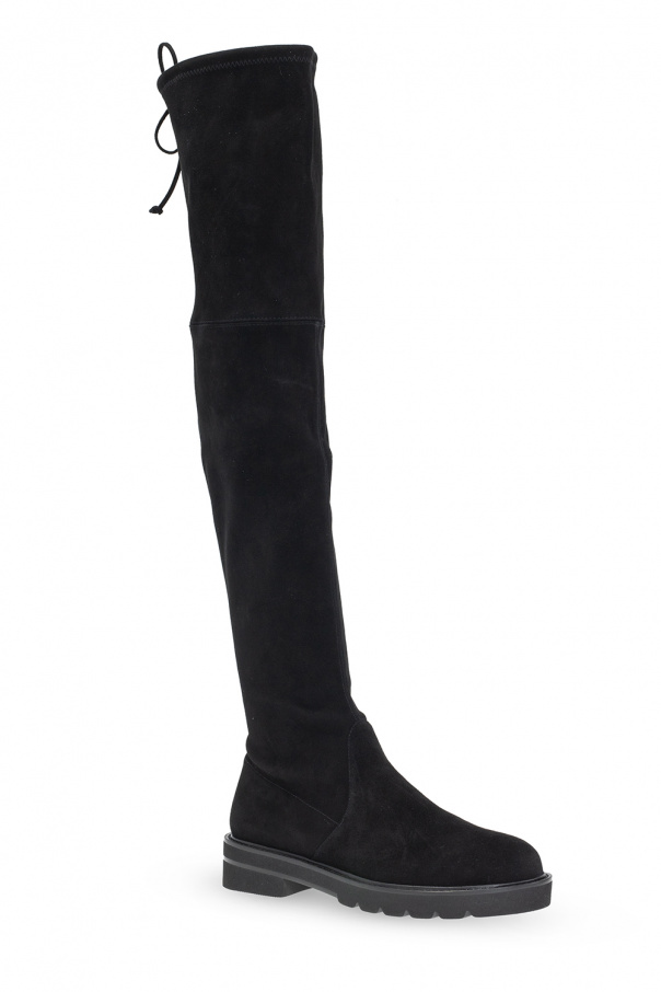 Black ‘Lowland’ boots from Stuart Weitzman. Made of suede, this pair features tie fastenings and a black rubber sole.