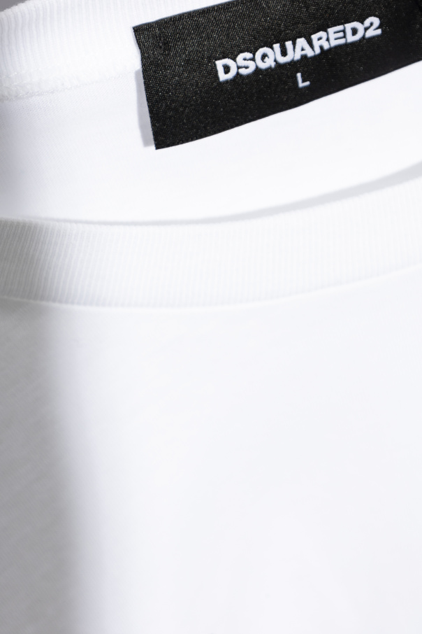 Presenting the Logo T-shirt from the exclusive brand Dsquared2, which seamlessly combines elegance with contemporary style. Crafted entirely from the finest quality cotton, this white T-shirt features a minimalist design with refined details. The front of the shirt boasts a large black print of the \"DSQUARED2\" brand name, with the phrase \"KEEP MOVIN\' AROUND\" in red, set against a rectangular backdrop. The classic cut with short sleeves and a crew neck ensures a comfortable fit, perfectly tailored to any silhouette. The brand\'s logo is also present on a black label sewn inside the neckline, further emphasizing the prestige and authenticity of the product. The back of the T-shirt remains plain, enhancing its minimalist appeal. Why Choose This Product? Exclusive Dsquared2 brand, symbolizing luxury and modernity. Crafted from the highest quality cotton, ensuring comfort and durability. Stylish prints and lettering, adding character and making a statement. Versatile cut, perfect for both casual and elegant outfits. Minimalist design, easy to pair with various wardrobe elements.