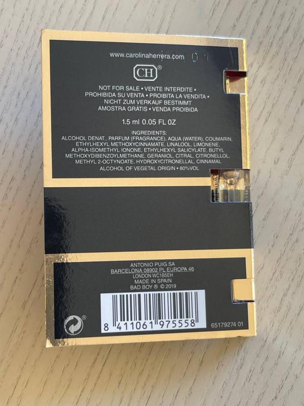 Кароліна Еррера вирушає у нову пригоду з Bad Boy, привабливим ароматом, створеним для чоловіка, який не боїться ризикувати, порушувати правила і обирати власний шлях. Його чоловічість полягає в здатності виражати свої почуття, вона ґрунтується на дуалістичності: в ньому поєднуються безстрашність і чутливість, сила і співчуття, героїзм і вразливість. Bad Boy - це ода бунтівникам, які вірні собі і своїм принципам. Девіз "Як добре бути поганим" уособлює сутність нового парфумерного творіння. Символом аромату Bad Boy є блискавка. Вона асоціюється з героїзмом і силою, характеризує непередбачуваних, незвичайних і привабливих чоловіків. Аромат Bad Boy вражає уяву так само швидко і точно, як блискавка. Над розробкою концепцій цього дивовижного аромату працювали креативний директор парфумерної лінії Carolina Herrera Кароліна Еррера де Баэз у тандемі з парфумерами Квентіном Бішем і Луїзою Тернер. Цей творчий союз наділив великолепну парфумерну композицію інтенсивними і енергійними нотами. Парфумерна композиція належить до групи східних пряних ароматів, а це завжди надзвичайне притягнення протилежностей. Яскраві ноти шавлії, зеленого бергамота і перцю поєднуються з чуттєвою насиченістю бобів тонка, какао і амбри. Bad Boy підкреслює світлу і темну сторони сучасного чоловіка