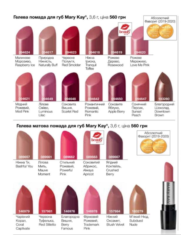 Гелева помада Mary Kay тримається на губах годинами, але при цьому не сушить шкіру.