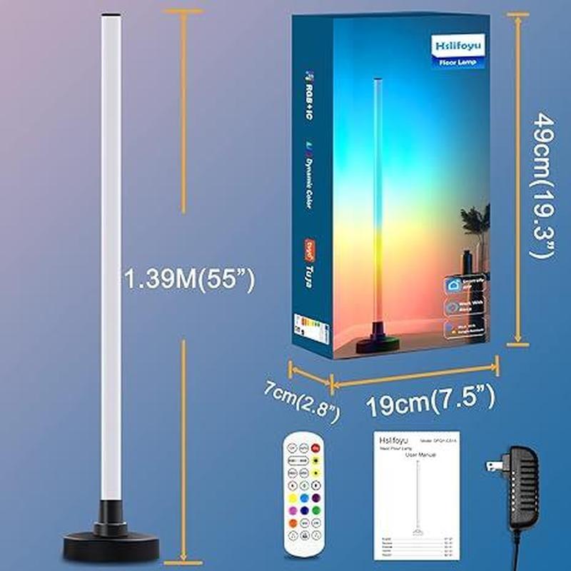 - Унікальний дизайн RGB: міцний корпус з алюмінієвого сплаву + високоякісний силіконовий дизайн Світлодіодний торшер, динамічні кольори RGB + IC, з нашим унікальним оптичним дизайном, наш торшер RGB може світити безперервно, досягаючи ефекту неонового світла. Вмикайте світло та режими відповідно до різних сцен, кутові світильники можуть створити для вас різну атмосферу.
