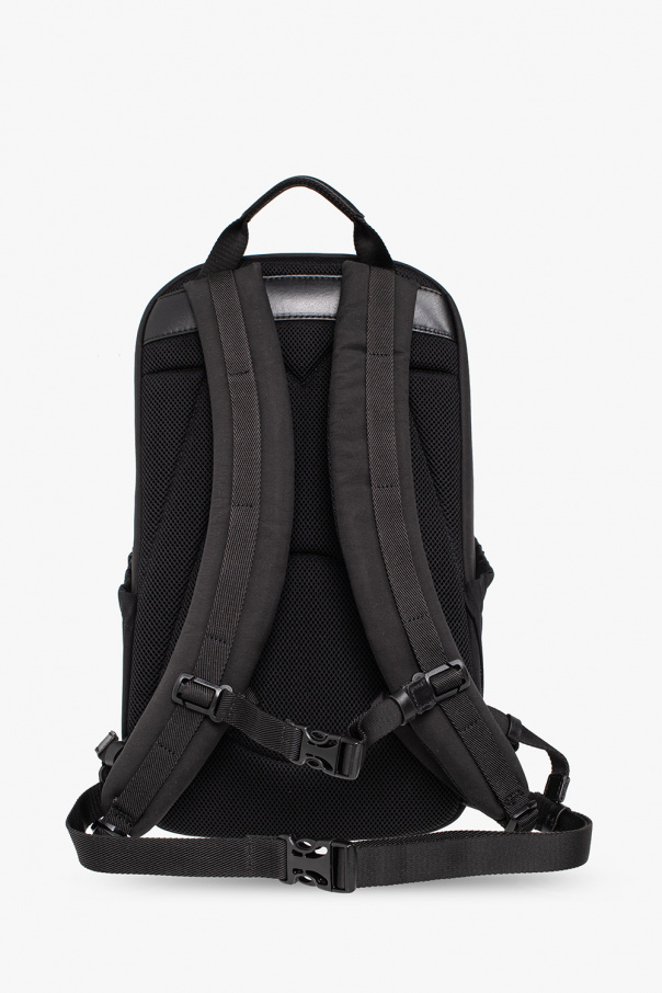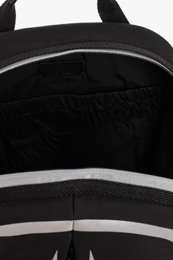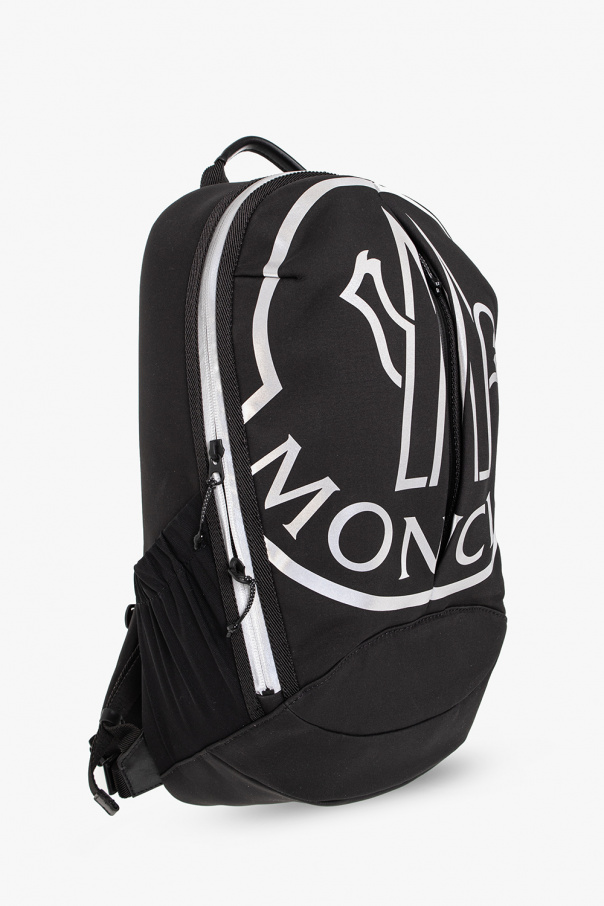 Black ‘Cut’ backpack from Moncler. Crafted from fabric with leather trims, this model features a two-way zip, printed reflective logo detail, front zip pocket, side pockets, leather handle, adjustable shoulder straps and one internal compartment with one slip pocket.