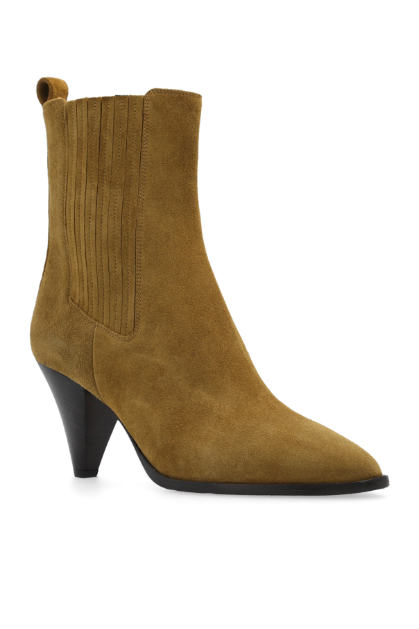 Brown ‘Reliane’ heeled ankle boots from Isabel Marant. Crafted from suede, this pair features elastic side panels and a brown leather sole.