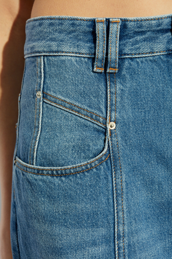 Introducing the exquisite Vetan Jeans by the illustrious Isabel Marant, a designer celebrated for her quintessential blend of timeless elegance and unrestrained style. These dark blue boyfriend jeans, meticulously crafted from premium 100% cotton, exhibit a non-stretch structure that epitomizes authentic denim craftsmanship. The jeans showcase a high-rise fit with straight legs, offering a relaxed silhouette that beautifully complements the feminine form. Delicate yet pronounced stitching enhances their structural allure, while the leather patch at the back provides an ideal canvas for the designer\'s signature. Featuring four classic pockets and belt loops, these jeans are a testament to functional elegance. The secure zip and button closure ensure a perfect fit, making them an indispensable addition to any wardrobe. Why Choose These Jeans? Designed by the renowned Isabel Marant, a luminary in French fashion. Crafted from robust, high-quality cotton for lasting durability. High waist and straight legs for a flattering and versatile fit. Distinctive visible stitching for a unique, structured appearance.