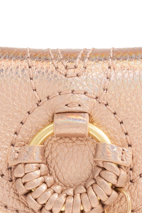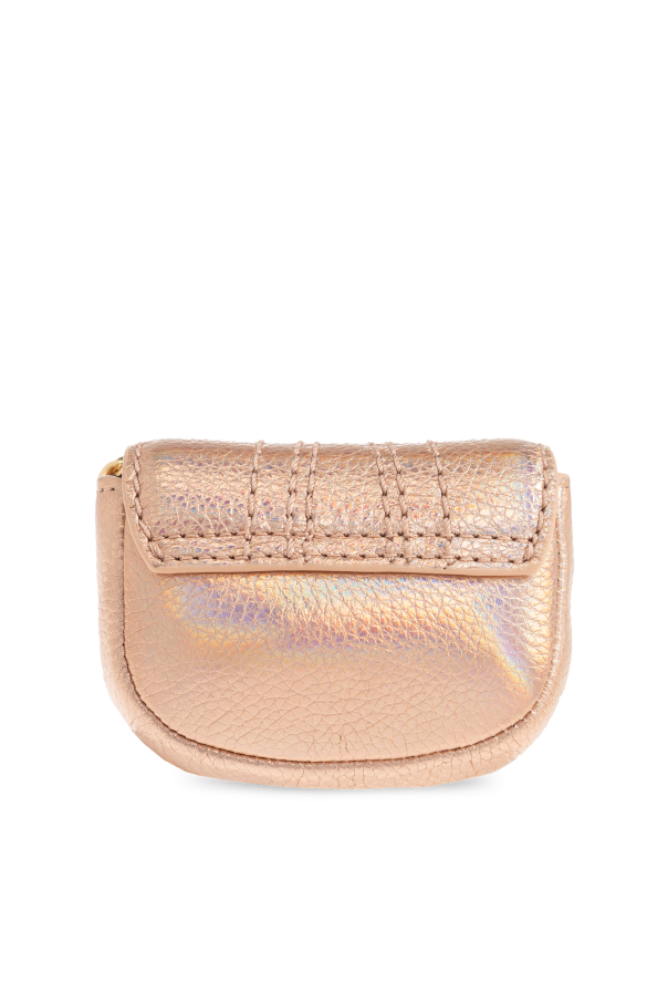 Keyring with a pouch from See By Chloe. Fastened with a lobster clasp closure, this design features a holographic snap-fastened pouch in pink, round element with woven details and charms as well as metal hardware in gold-tone.