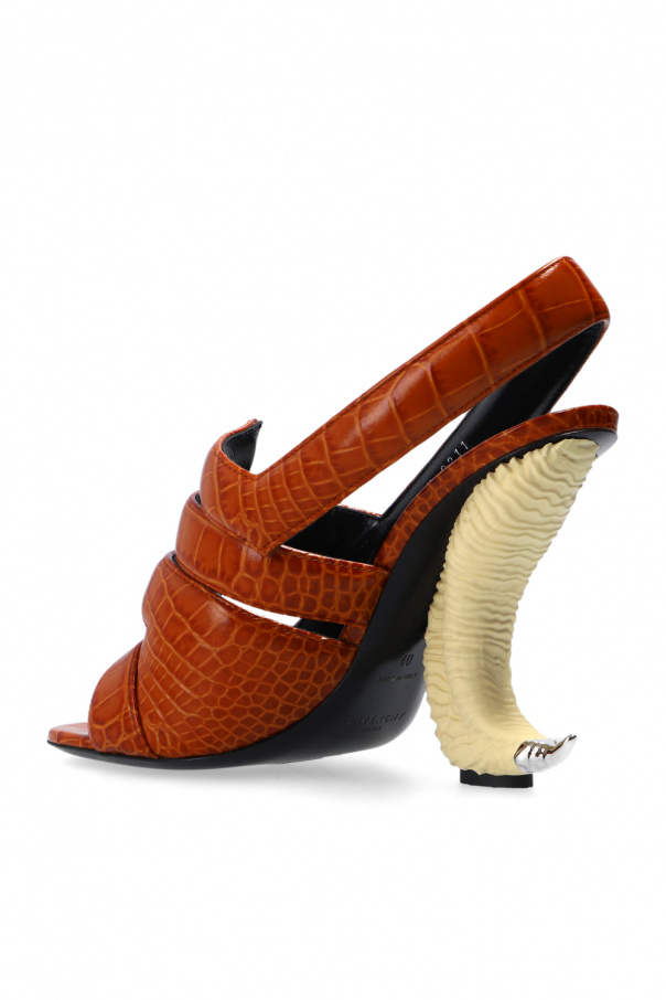 Brown sandals from Givenchy. Crafted from textured leather, this pair is complete with a decorative heel in cream and a black leather sole.