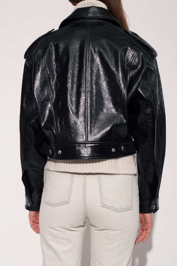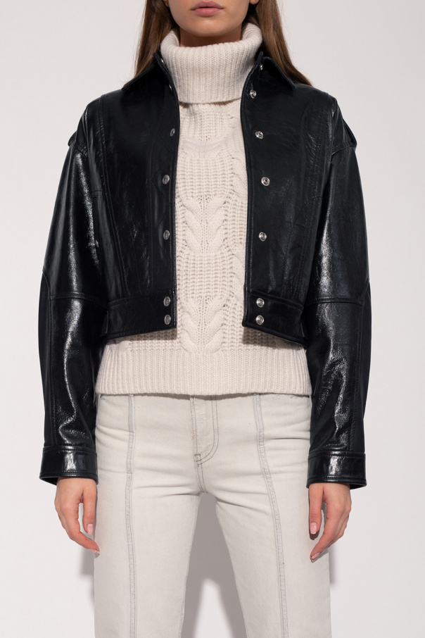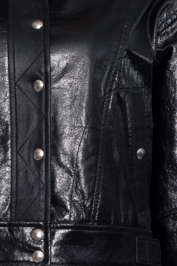 Black jacket from Iro. Made of lamb leather, this style features snap fastenings, epaulettes on the shoulders, two snap-fastened pockets on the front and long sleeves with snap-fastened cuffs.