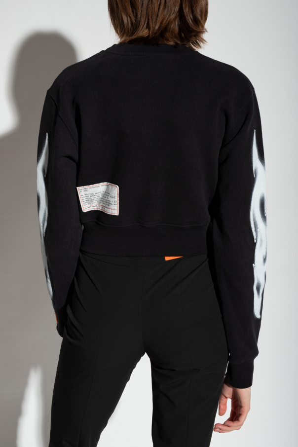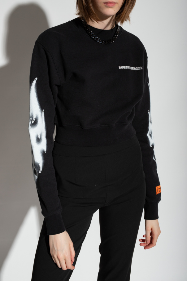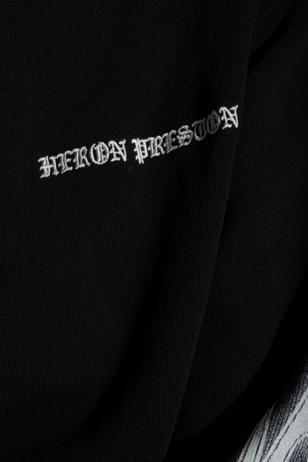Black crewneck sweatshirt from Heron Preston. Crafted from cotton jersey with a cropped fit, this style features a white logo print, logo embroidery, a logo patch and a ribbed bottom hem and cuffs.