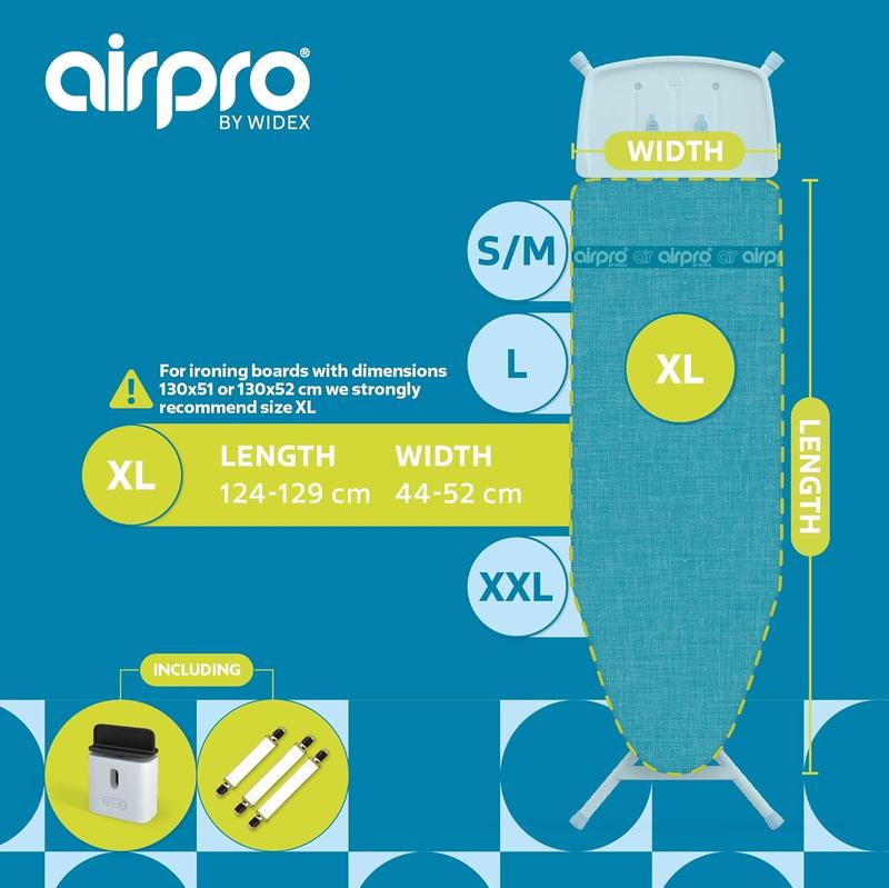 Чехол для гладильной доски AirPro By Widex, 6 слоев, для парового утюга, 2 универсальных размера XL, макс. 125 x 50 см, и XXL мах. 144 х 55 см. Без воды под столом, более быстрое глажение.