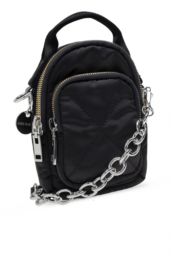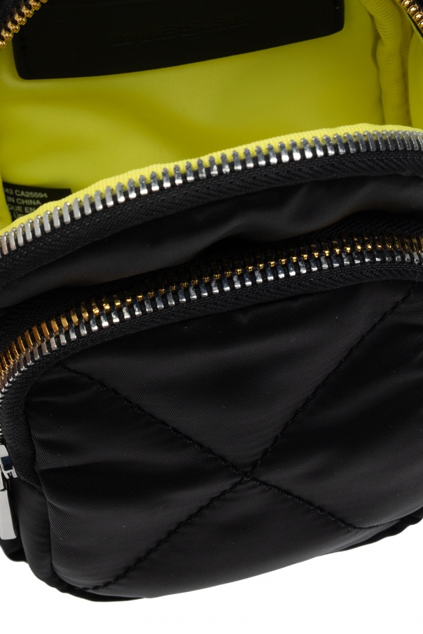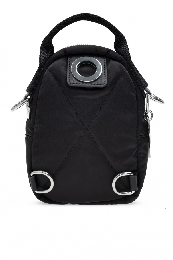 Black ‘Ledybag’ backpack from Diesel. Fastened with a gold-tone and silver-tone zipper, this item features a zip pocket on the front, a half-round handle, a detachable and adjustable strap, one internal compartment and an attached charm with an embossed logo.