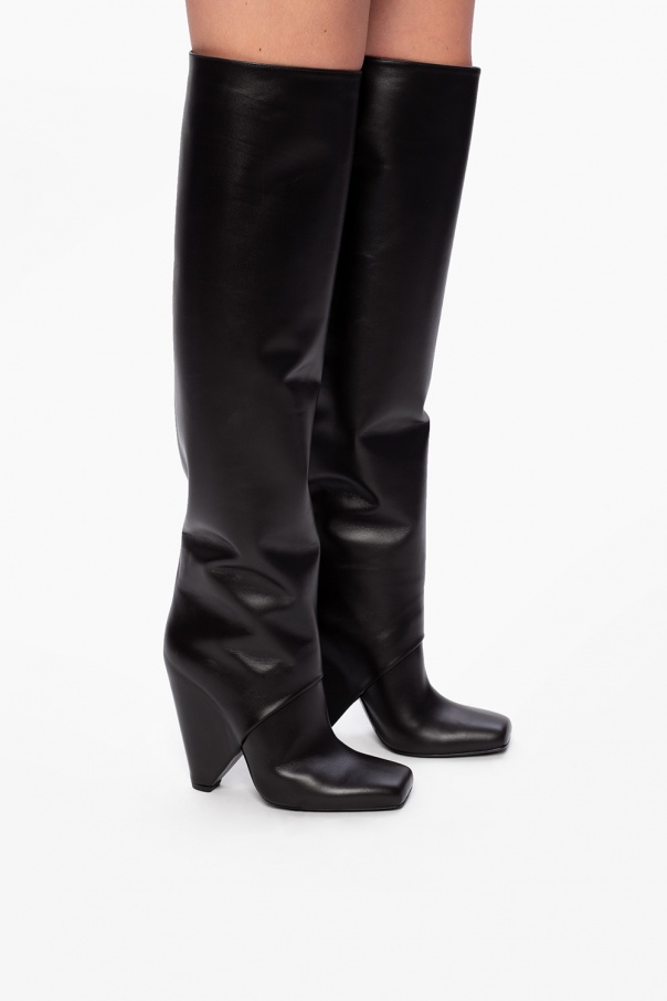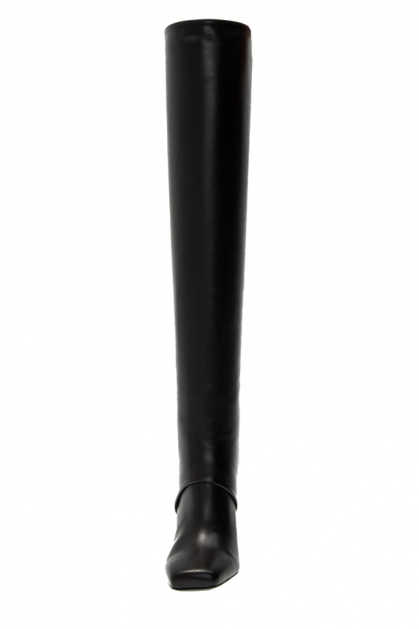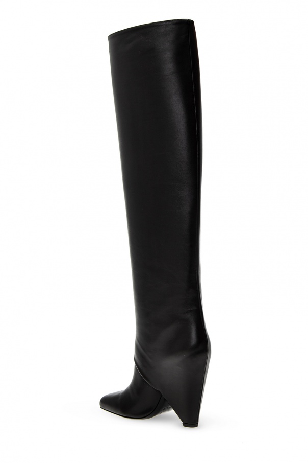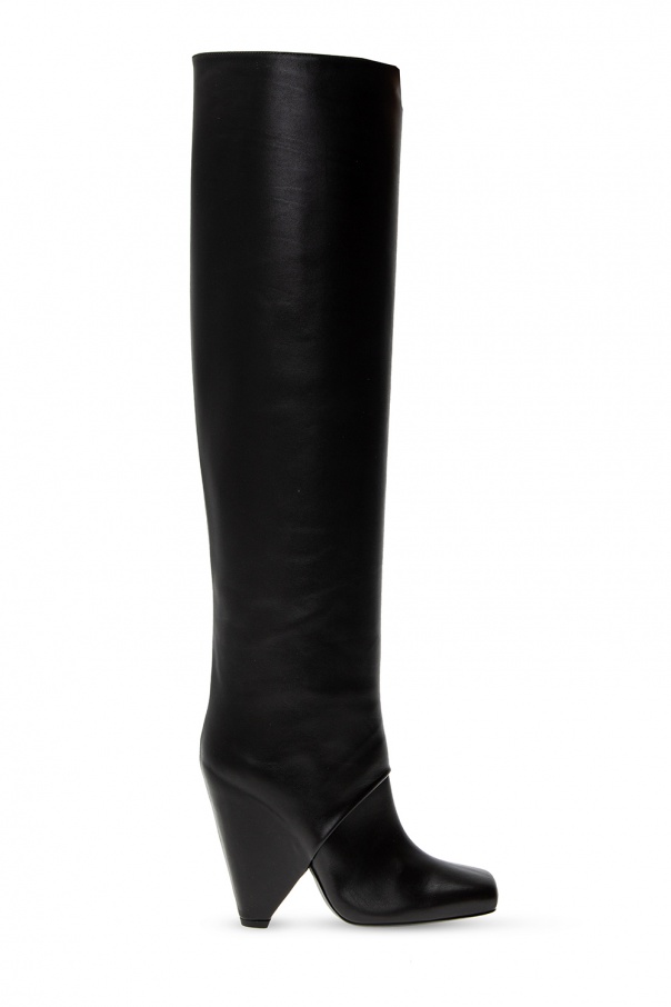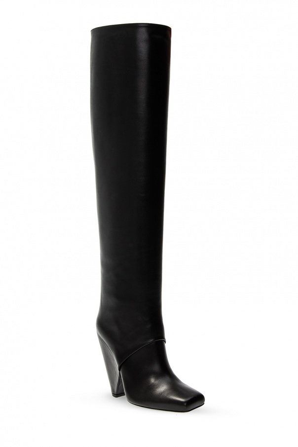 Black heeled knee-high boots from Balmain. Crafted from calf leather, this pair is set on a black leather sole.