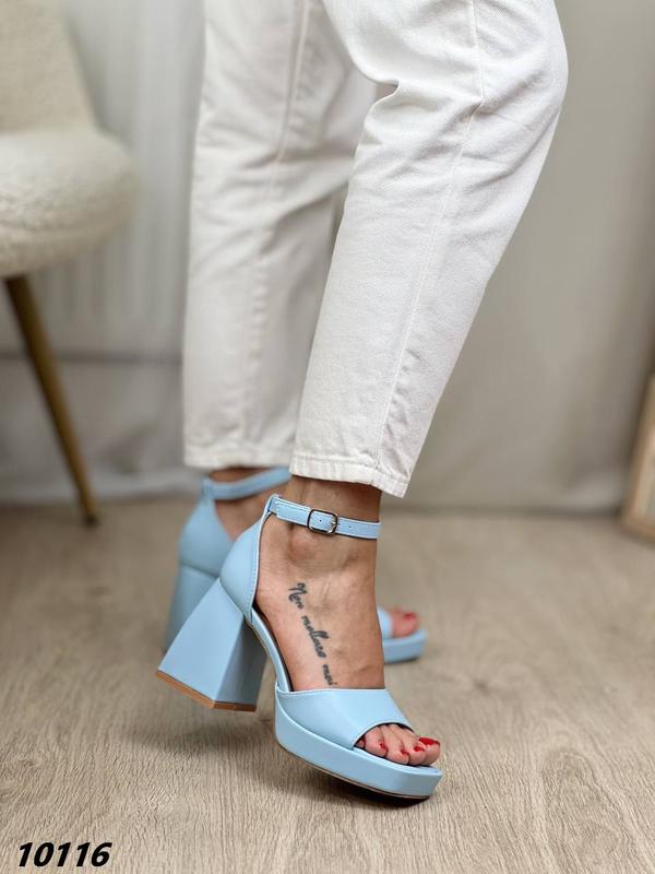 Босоніжки Матеріал еко шкіра Колір голубий Зверху на застібці Закрита п'ята Висота каблука 9 см, висота попереду 2 см більшомірять на один розмір🛒Розмірна сітка: