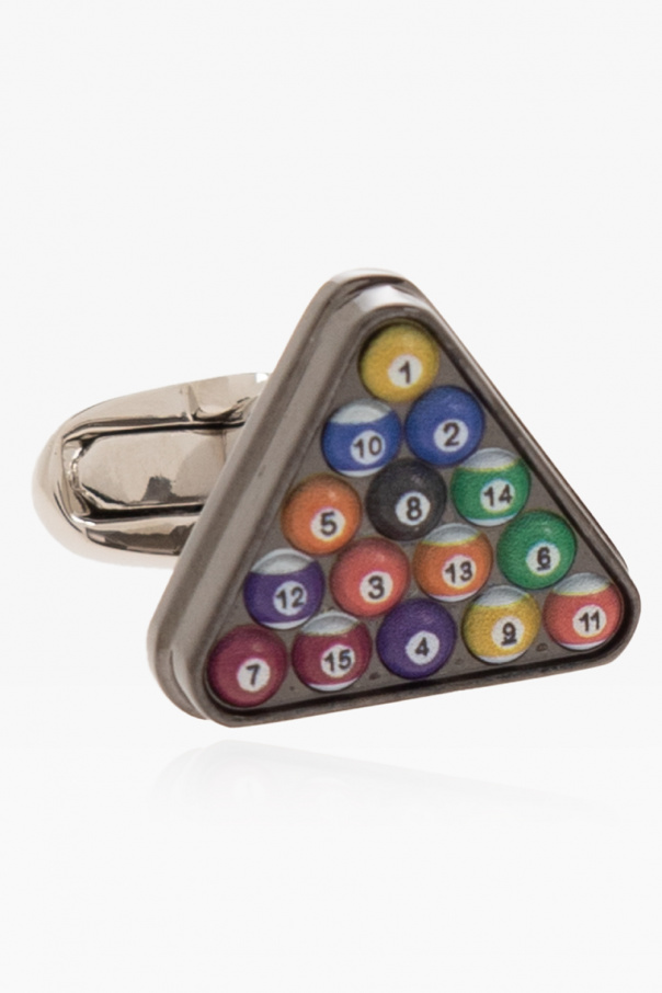 Cufflinks with a billiard ball motif from Paul Smith. Made of silver-tone copper, these items feature an engraved logo and a colourful enamel finish.