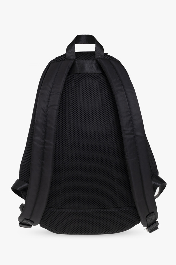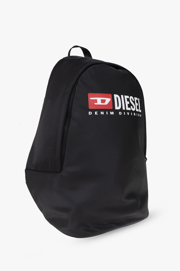 Black ‘RINKE’ backpack from Diesel. Printed with the brand\'s logo, this design features a two-way zip fastening, a half-round handle, adjustable shoulder straps, black metal hardware and one internal compartment with a slip pocket.