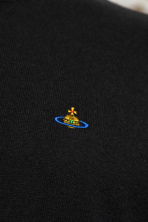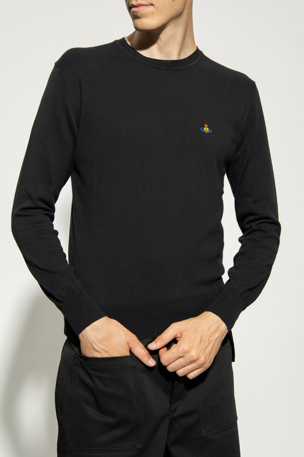Black crewneck sweater from Vivienne Westwood. Made of a cotton and cashmere blend, this long sleeve design features a multicolored logo embroidery and ribbed trims.
