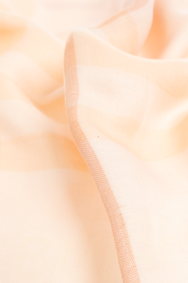Beige scarf from Burberry. Made from a wool and cashmere blend, this item is enriched by a check pattern, logo patch and raw trims.
