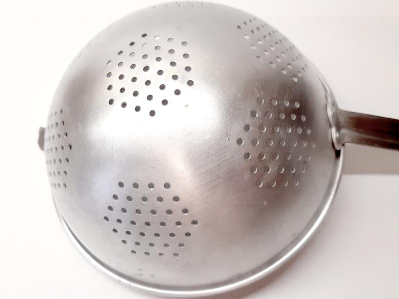 Дуршлаг СССР, алюминиевый винтажный б-у дуршлаг 40-21-9 см, клеймо, цена, следы времени