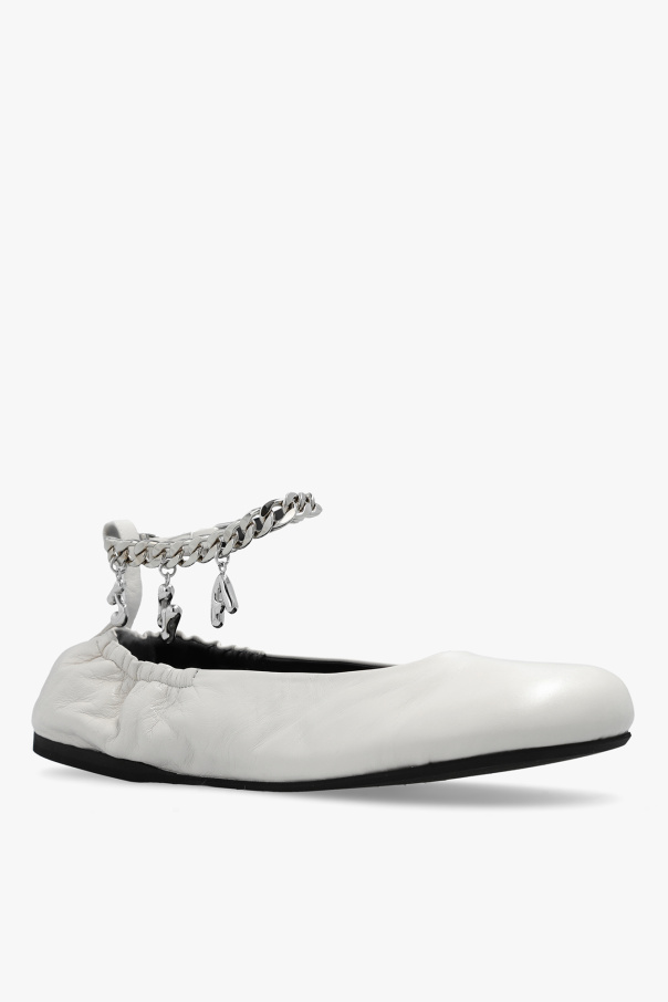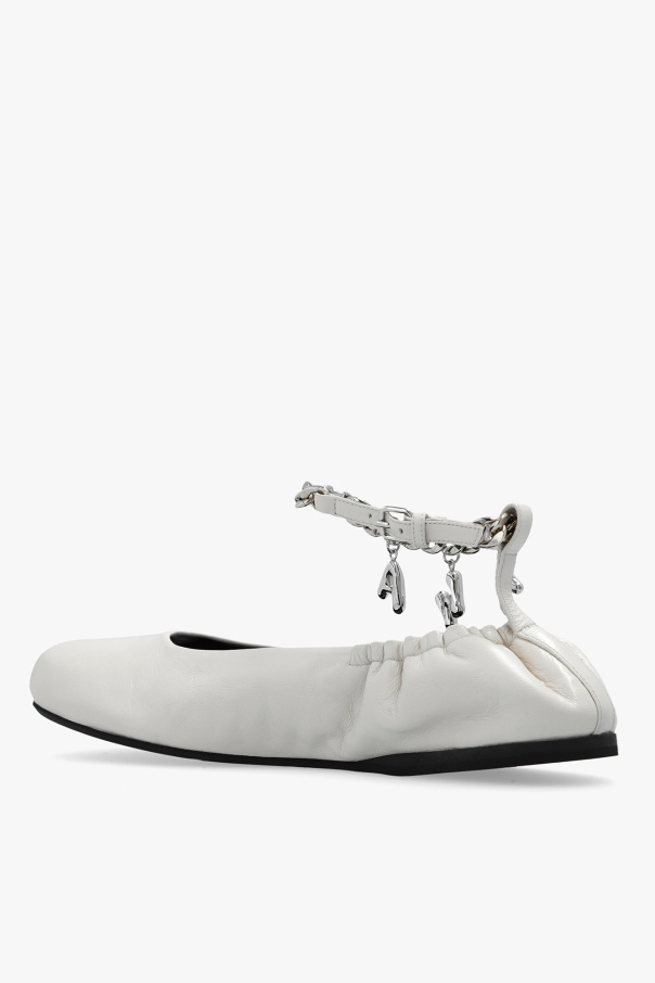Greyish cream ballet flats from JW Andreson Made of leather, this pair features a chain with logo charms in silver-tone, decorative toe and black rubber sole.
