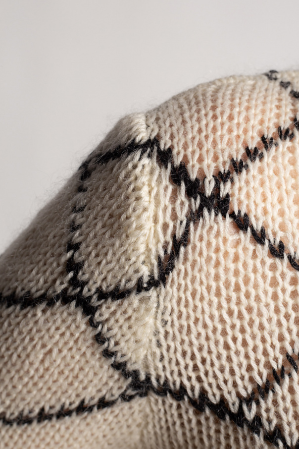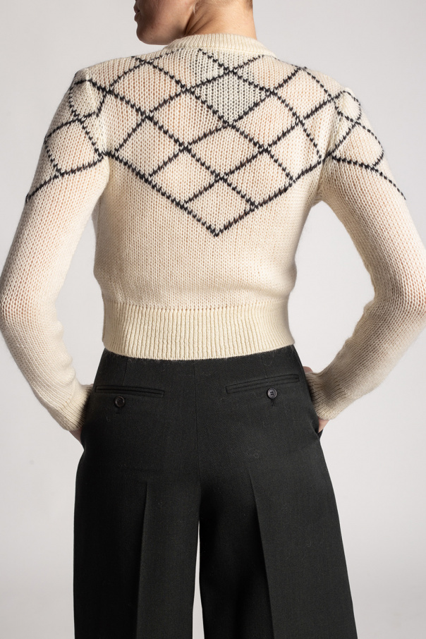 Cream and black sweater from Saint Laurent. Knitted from wool, this round neck design has long sleeves.