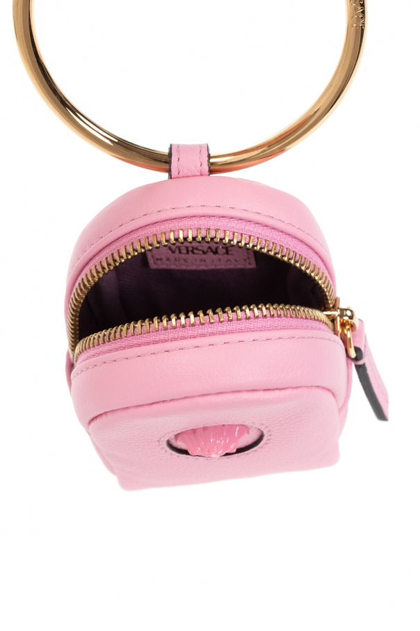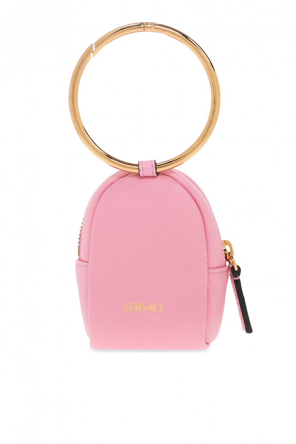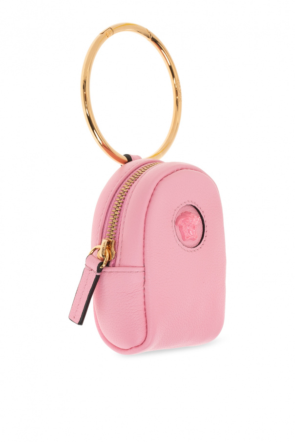 Pink ‘La Medusa’ pouch Versace. Made of calf leather, this model features a zip fastening, the label’s signature Medusa head and logo-engraved bracelet handle in gold-tone.