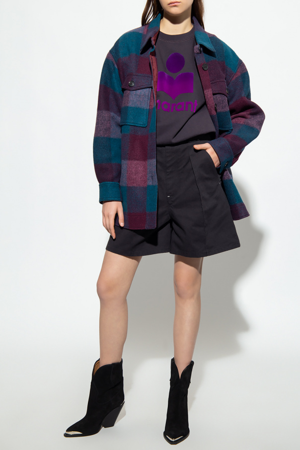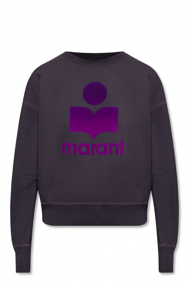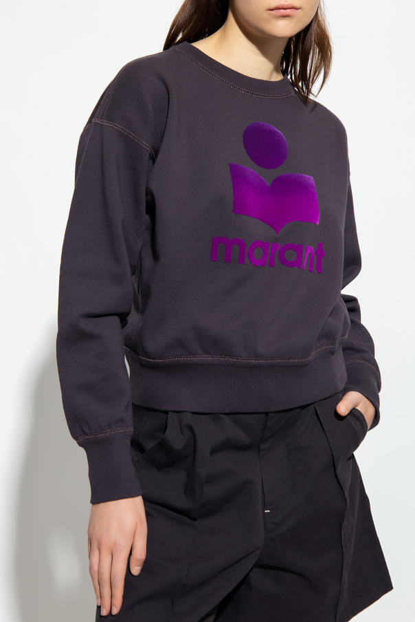 Navy blue crewneck sweatshirt from Isabel Marant Étoile. Made of cotton, this style showcases a purple velvet-flocked logo on the front and ribbed trims on the collar, bottom hem and cuffs.