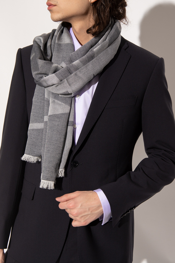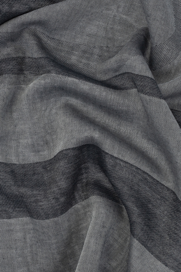 Greyish blue scarf with a logo embroidery and white fringes from Emporio Armani.