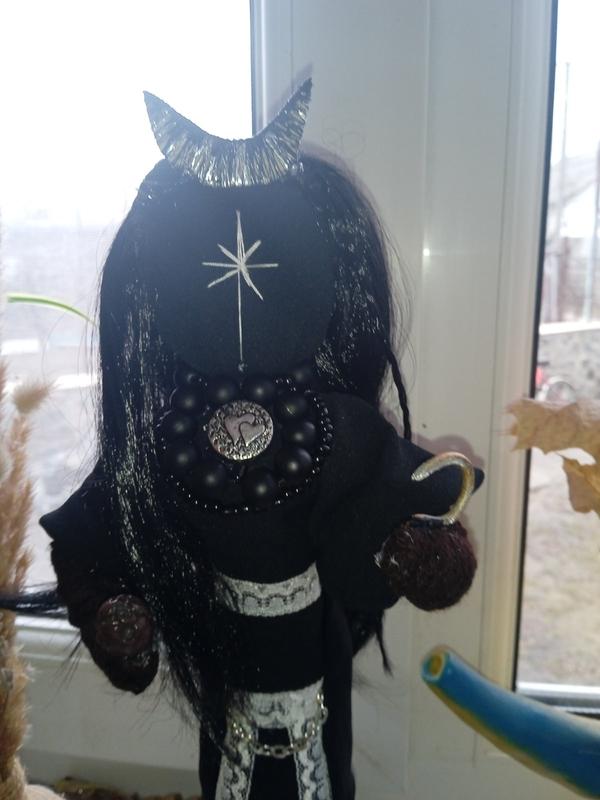 мотанка сувенирная кукла, ручной работы,) — Мара-женский персонажслованской мифологии, олицетворение сезонных изменений. Гипотетично - богиня потоибежья, ночи, сезонности, смерти и воды, покроведельника магии, перерождения,змин в лучшую сторону.На платья вышиты руны, знак воды снизу,сила, полянка.