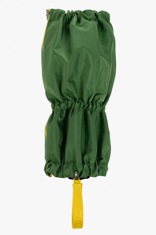 Green and yellow trekking gaiters from Dsquared2. Emblazoned with a logo patch, they feature elasticated straps and zip closures.