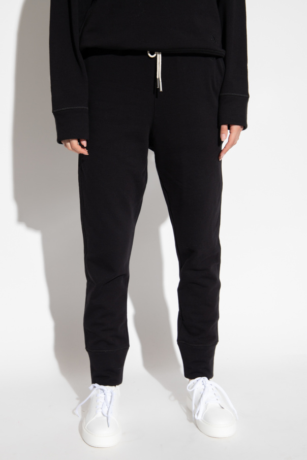 Black sweatpants from Jil Sander+. Crafted from cotton, this pair features a drawstring waistband, elasticated cuffs, three slip pockets and logo embroidery on the front.