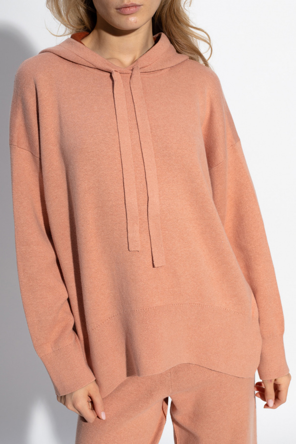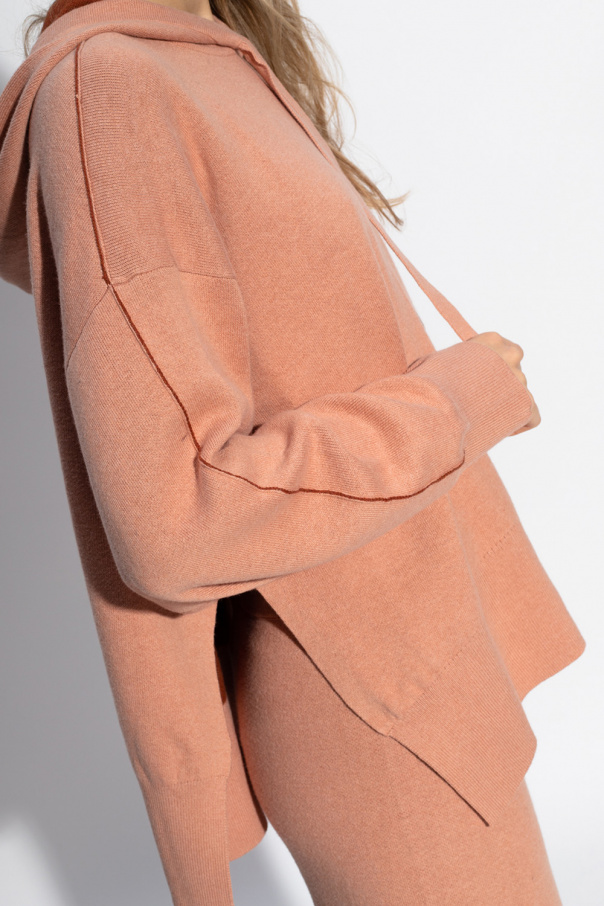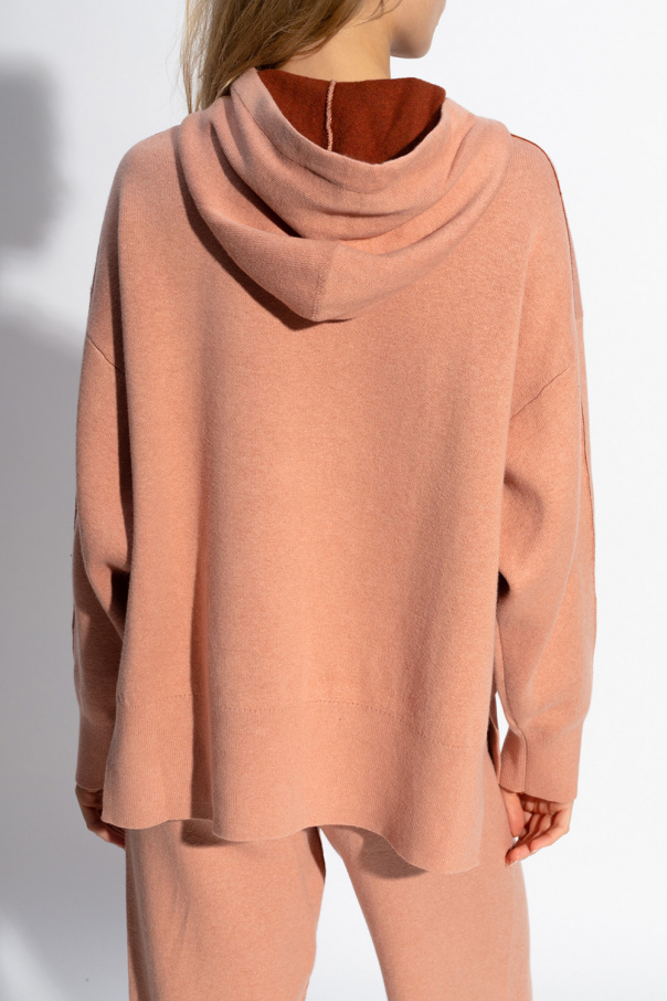 Pink and beige sweater with cut-out details from Proenza Schouler White Label. Made of cotton, this garment features a drawstring hood and long sleeves with ribbed cuffs.