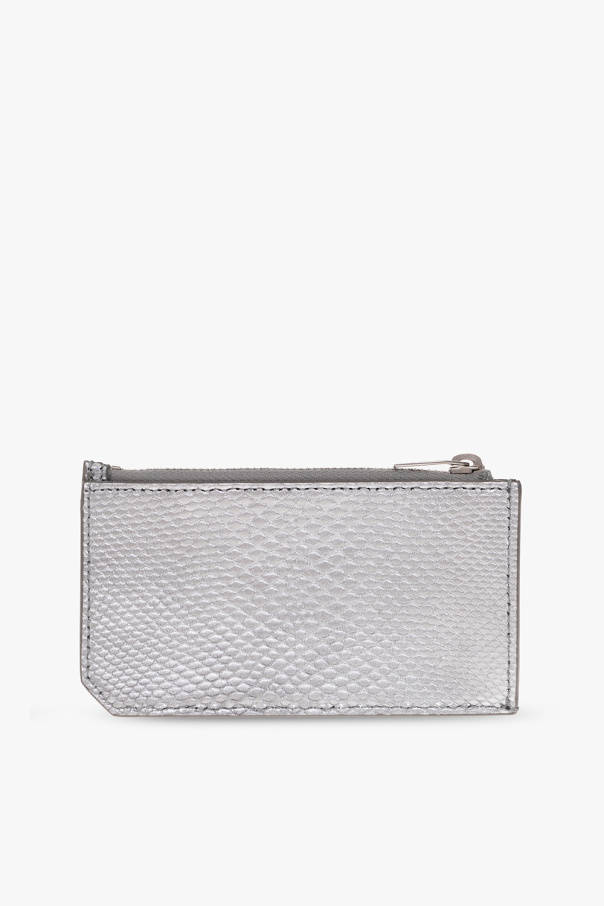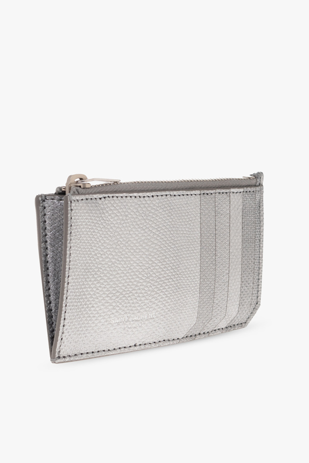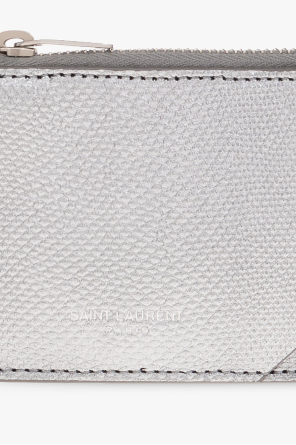 Silver-tone card holder from Saint Laurent. Made of textured leather, this item features an embossed logo, five card slots and one zip pocket.