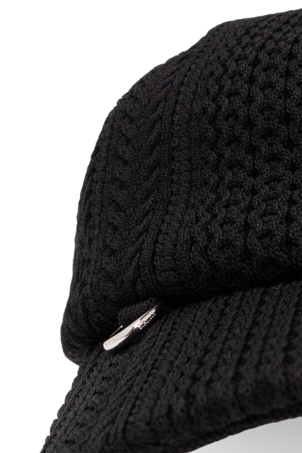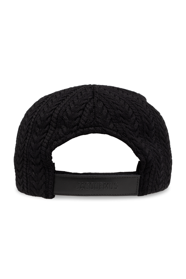 Black ‘Belo’ baseball cap from Jacquemus. Made from knitted fabric and decorated with topstitched details, this item features a silver-tone charm on the front and a velcro closure with a tactile logo on the back.