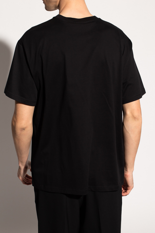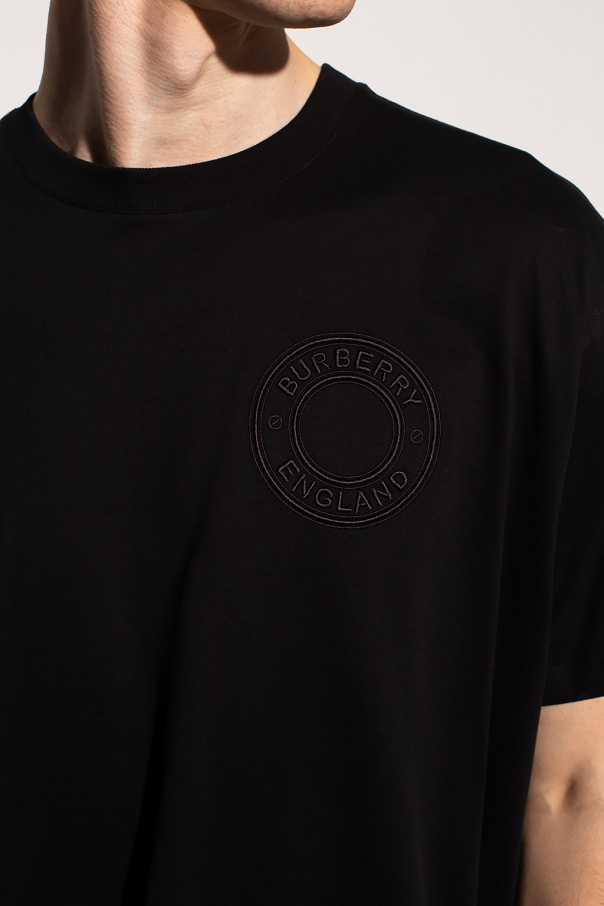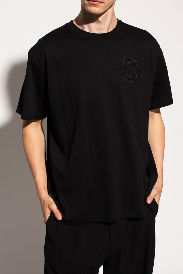 Black T-shirt from Burberry. Made of cotton, this garment features a ribbed round neck and a black logo pattern.