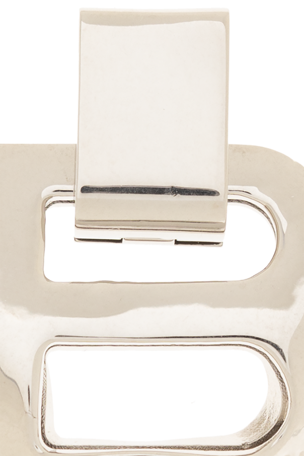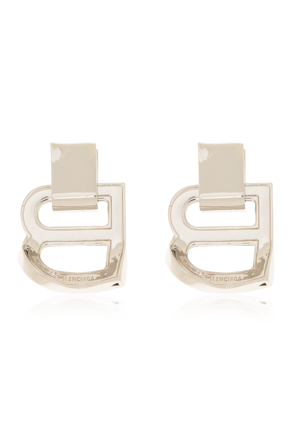 Silver-tone hinge back earrings with a logo charm from Balenciaga. Made of brass.