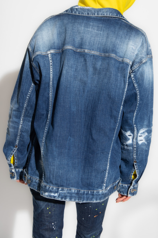 Blue denim jacket from Dsquared2. Made of cotton with a vintage effect, this style features a relaxed silhouette, button fastenings, long sleeves, two welt pockets and two flapped pockets.