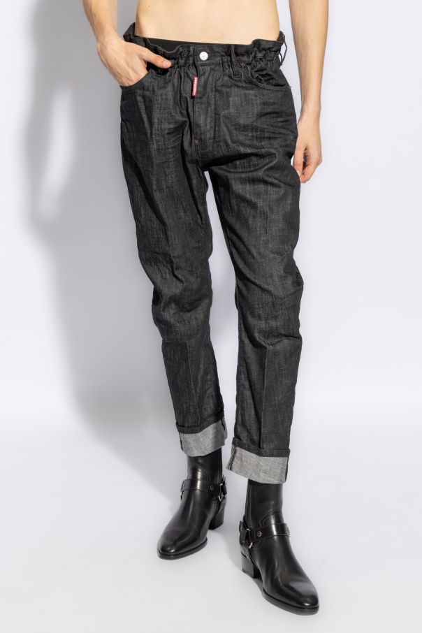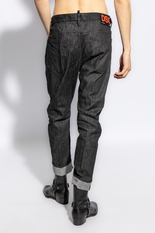 Introducing the epitome of avant-garde denim fashion, the Dsquared2 Big Brother Jeans. Crafted with an unyielding dedication to quality, these jeans are predominantly black, featuring tastefully distressed details that lend a vintage flair to their modern, tapered silhouette. The robust and thicker denim material, a hallmark of premium jeans, assures not only durability but also an exquisite feel against the skin. The unique character of these jeans is accentuated by a red loop detail near the zipper fly, a subtle nod to the meticulous attention to detail by the renowned designer Dsquared2. Further enhancing their appeal are the rolled-up cuffs, revealing the fabric\'s inner texture, and a distinct designer logo on the back waistband, underscoring the jeans\' exclusivity. Functionality marries style with the inclusion of a conventional zip fly with button closure and five-pocket styling, ensuring practicality is not sacrificed. The jeans\' composition of 98% Cotton and 2% Elastane guarantees a comfortable stretch, fitting impeccably while allowing ease of movement. Why Purchase This Product? Exclusive Design: With the signature red loop and designer logo, these jeans stand out as a testament to the Dsquared2 legacy. Superior Quality: Crafted from high-grade denim, ensuring longevity and sustained comfort. Versatile Style: The slightly lifted cuffs and refined distressed look allow for seamless transitions from casual to semi-formal settings. Perfect Fit: Tailored to embrace the contours of your body, offering a flattering tapered fit without compromising on comfort.