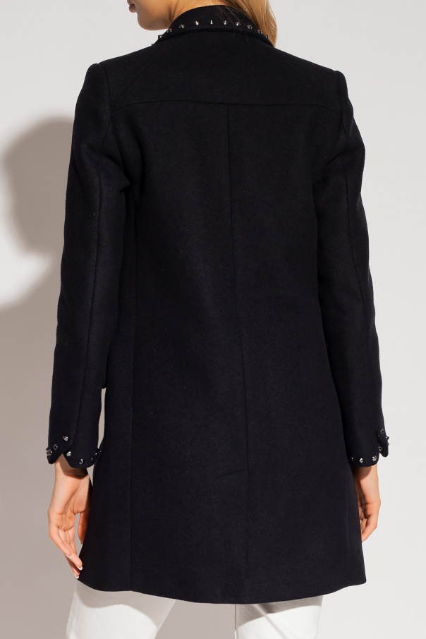 Black ‘Marco’ coat from Zadig & Voltaire. Crafted from a wool blend with a single-breasted silhouette, this style features a single button closure, two flapped pockets, a single back vent and stud embellishments on the sleeves and peak lapels.
