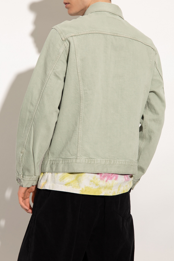 Greyish green denim jacket from Levi’s, the ‘WellThread™’ collection. Fastened with buttons, this long sleeve design features two slip pockets, two flap pockets and logo patch in red and white.