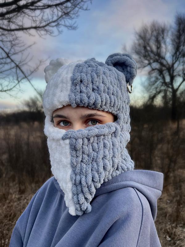 Балаклава з вушками ведмедика. Також може бути виконана з іншими вушками і в іншій кольоровій гамі.