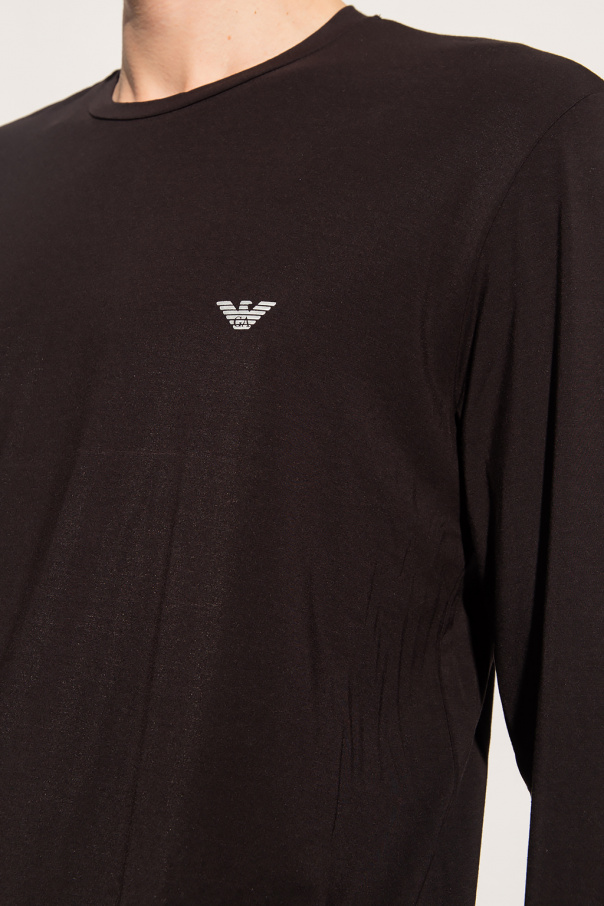 Black two-piece pyjama set from Emporio Armani. Top features a round neck, long sleeves and a reflective graphic print with the brand\'s logo on the front. Pants feature an elasticated waistband with a drawstring fastening, two side seam pockets and a reflective graphic print with the brand\'s logo on the front.