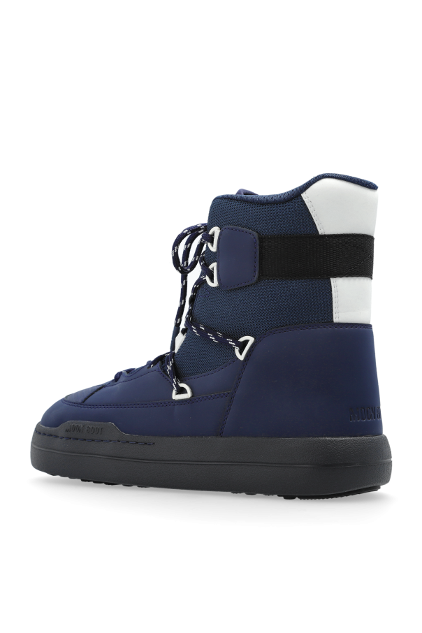 Introducing the MB Park Sneaker, a masterpiece from the distinguished Moon Boot collection. These navy snow boots are designed to transcend the ordinary, combining the allure of exclusivity with unparalleled functionality. Crafted with a robust exterior of premium materials, these boots are tailored to withstand inclement weather, ensuring your feet remain safeguarded. The high-cut silhouette extends above the ankle, providing enhanced protection against harsh winter conditions, while the durable rubber sole offers superior insulation from the ground. Exquisite detailing includes metal lace hooks for a secure fit, accentuated by contrasting white elements and a striking black band. The embossed logo on the side of the sole speaks volumes of their prestige. Inside, a plush lining promises exceptional comfort, making them indispensable in cold climates. Why Choose This Product? Exclusive design by Moon Boot Weather-resistant materials High-cut for optimal warmth Stylish contrasting details Luxurious comfort with soft lining
