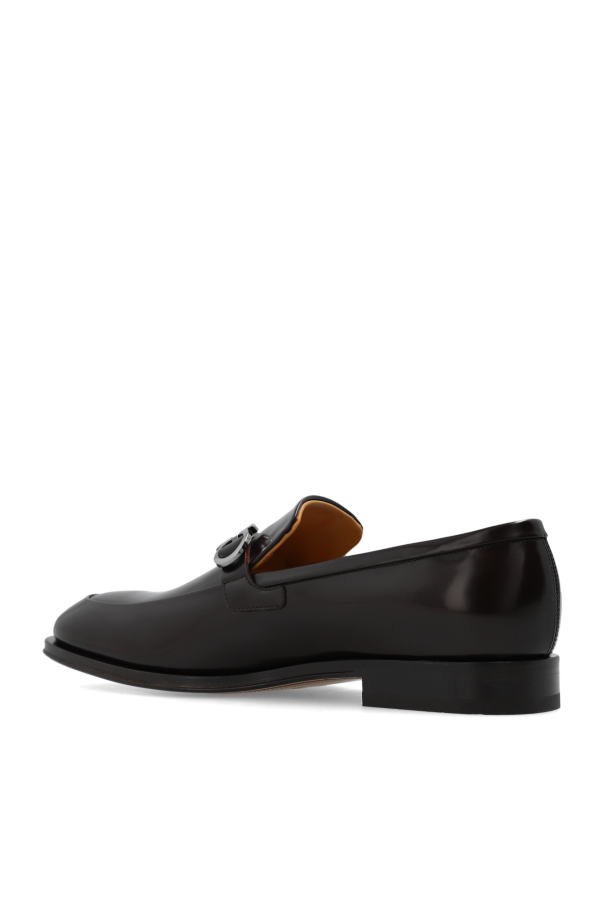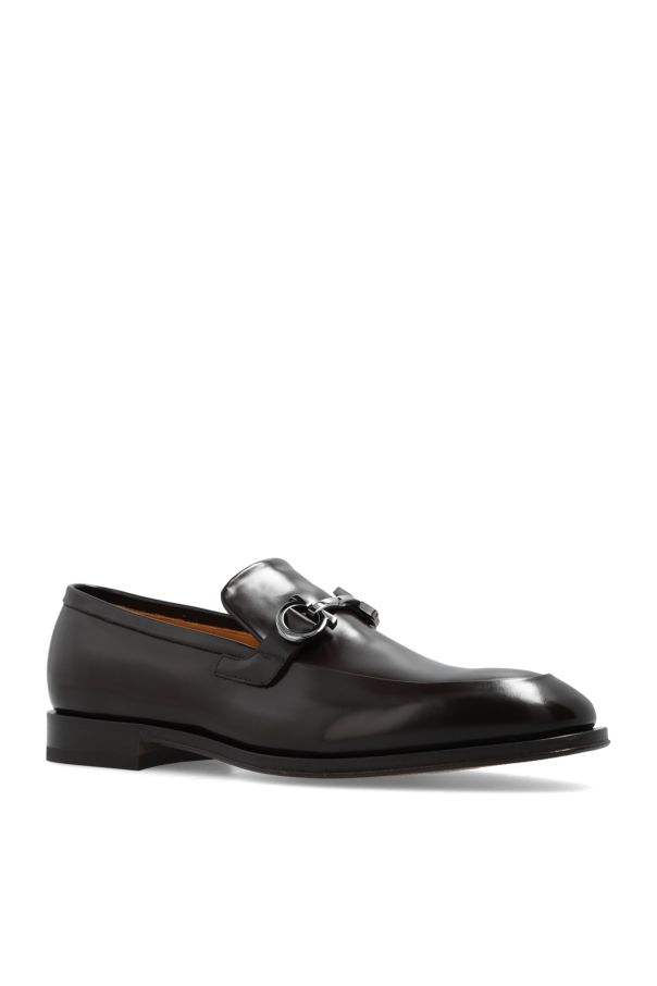 Dark brown ‘Finley’ shoes from FERRAGAMO. Made of leather, this pair features a Gancini logo, beige leather sole and a wide-fit insole.