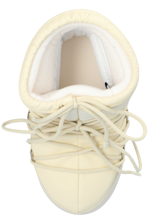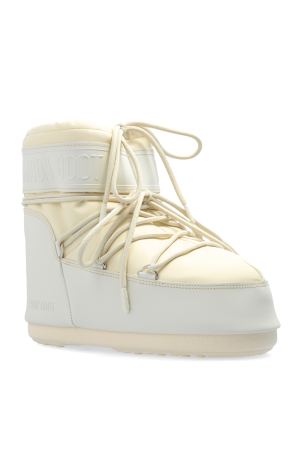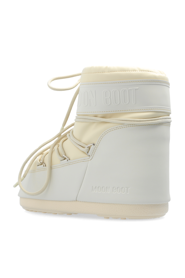 Introducing the Icon Low Rubber snow boots by the illustrious Moon Boot, an epitome of winter elegance and functionality. These boots, enveloped in pristine white, are a modern homage to the iconic design pioneered by Giancarlo Zanatta in the \'70s, capturing the imagination of style aficionados worldwide. Crafted with a harmonious blend of rubber and textile, these snow boots boast a quintessential silhouette characterized by a rounded toe and a high-top shaft. Their distinctive lacing encircles the boot, lending a touch of visual intrigue, while the embossed \"Moon Boot\" logo adds a signature flair. Designed for optimal performance, the thick, grooved outsole ensures superior grip on slippery surfaces, while the insulated interior guarantees unparalleled warmth and comfort. Despite their robust construction, these boots remain remarkably lightweight, promising effortless wear. Why Choose This Product? Iconic Design: Timeless style with a modern twist. Premium Materials: Durable rubber and textile construction. Superior Grip: Grooved outsole for excellent traction. Maximum Comfort: Insulated for warmth and lightweight for ease.