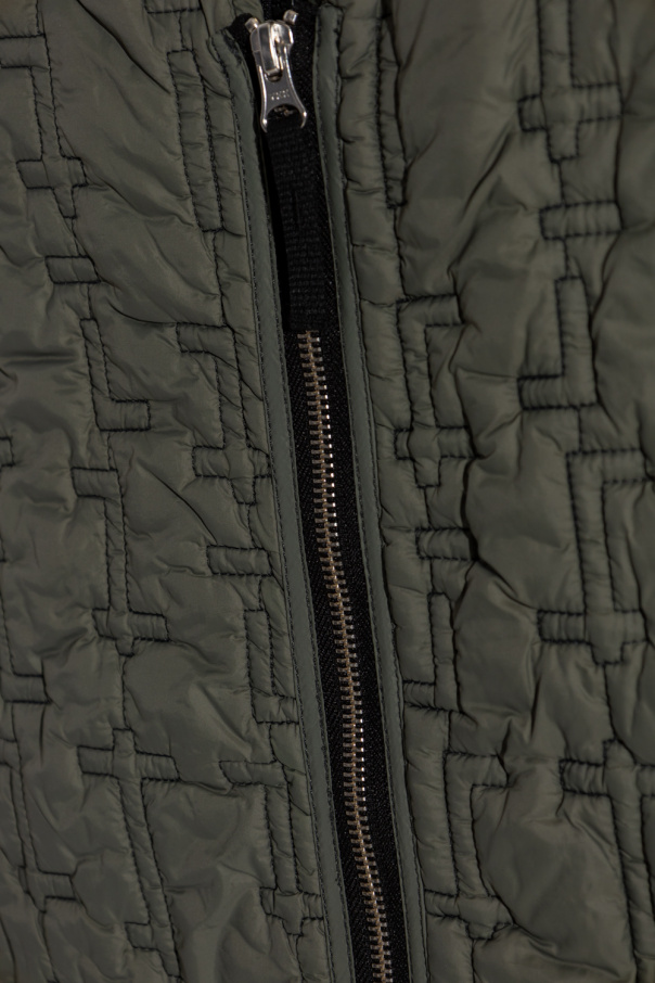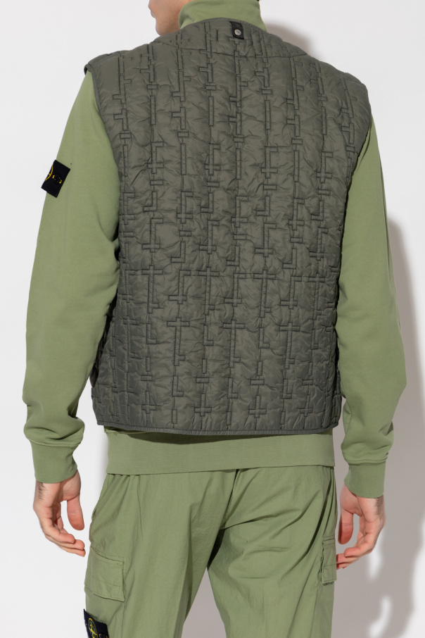 Dark green quilted vest with two slip pockets and zip fastening from Stone Island.