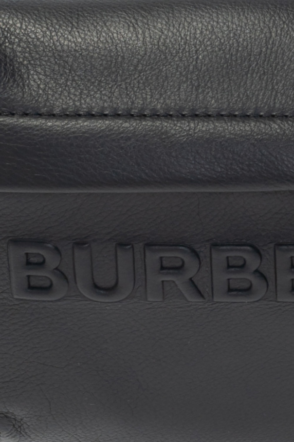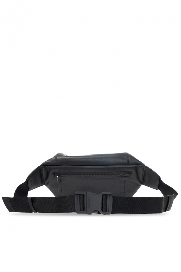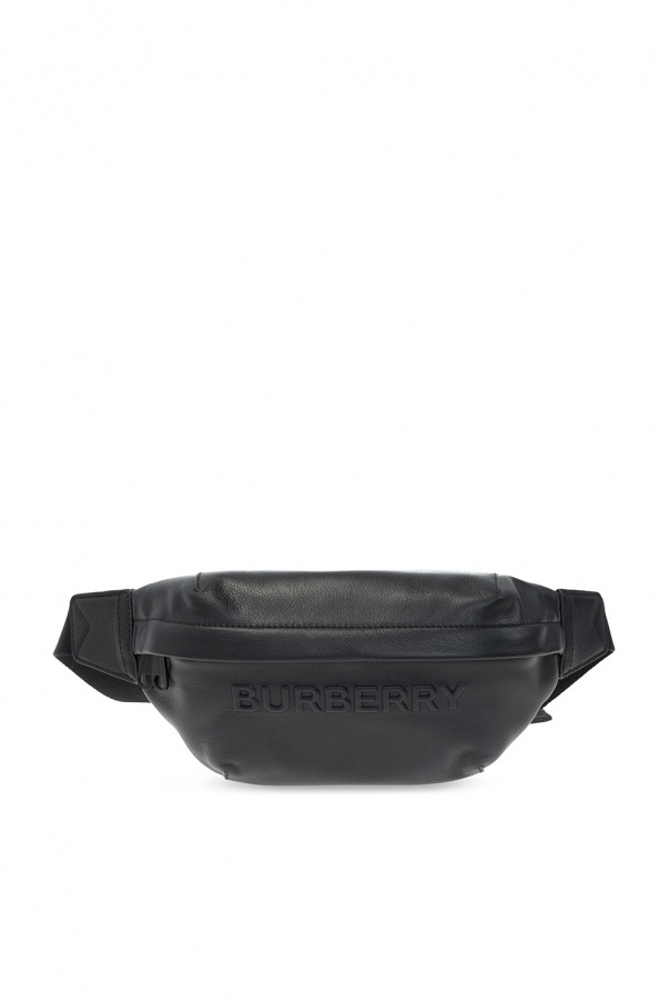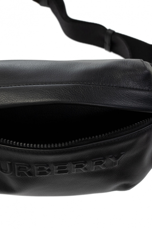 Black 'Sonny' belt bag from Burberry. Made of grainy leather, this item fastens via a zip and features an embossed logo on the front, a zip pocket at the back, an adjustable strap and one internal compartment with a slip pocket.