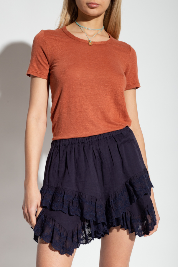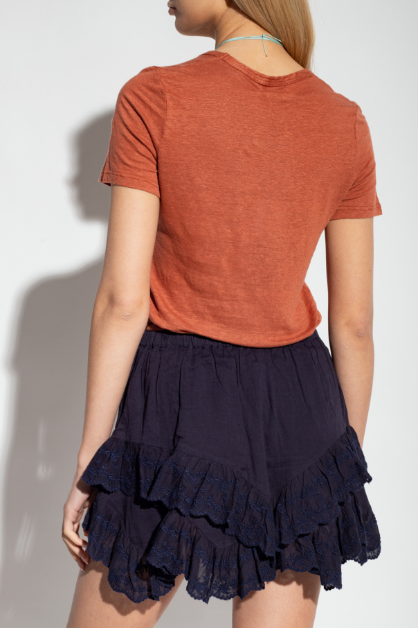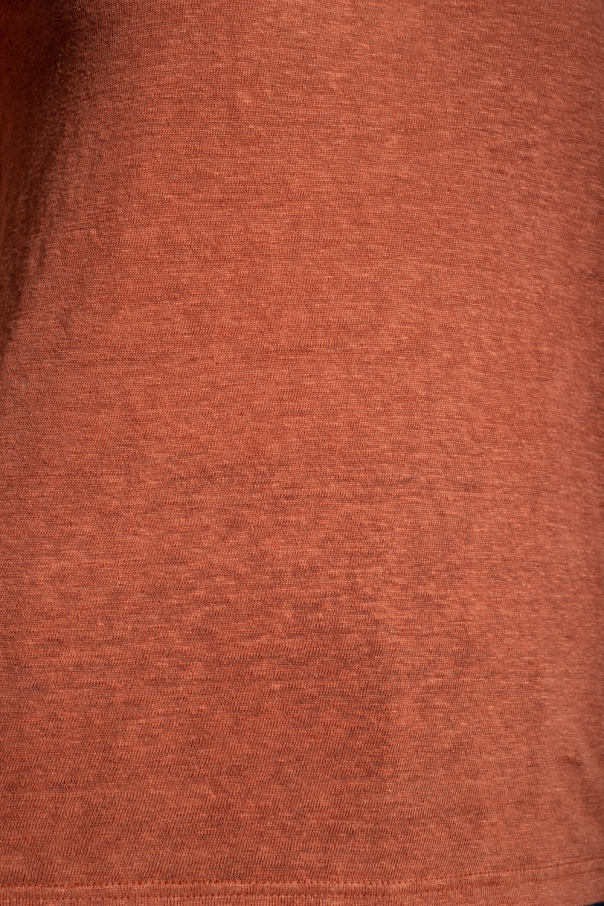 Brown and orange ‘Kiliann’ crewneck T-shirt from Isabel Marant Etoile. Made from linen, this style features short sleeves and a trimmed round neck.