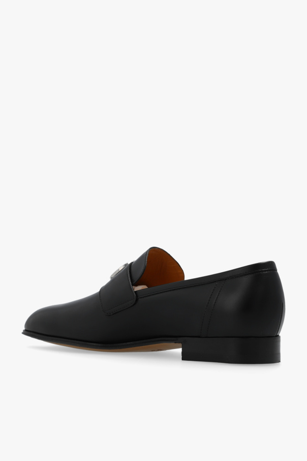 Black shoes from Gucci. Made of leather, this model sits on a beige leather sole and showcases a silver-tone logo application.