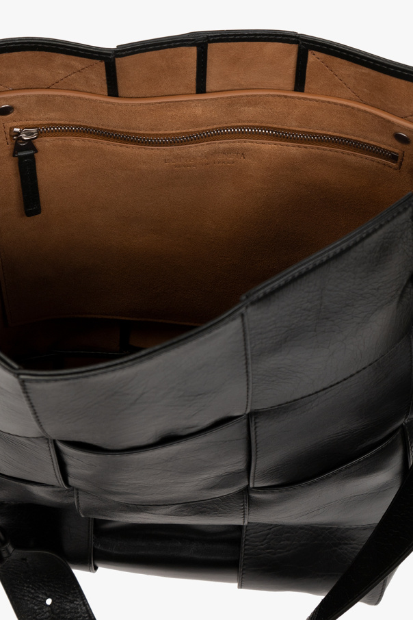 Black ‘Arco’ shopper bag from Bottega Veneta. Crafted from leather with the brand\'s signature weave pattern, this design features silver-tone metal hardware and one internal compartment with a zip pocket.