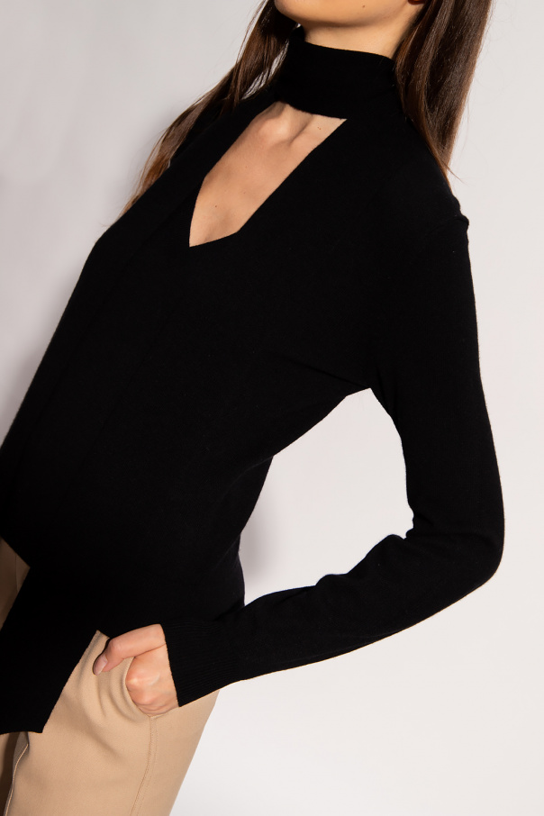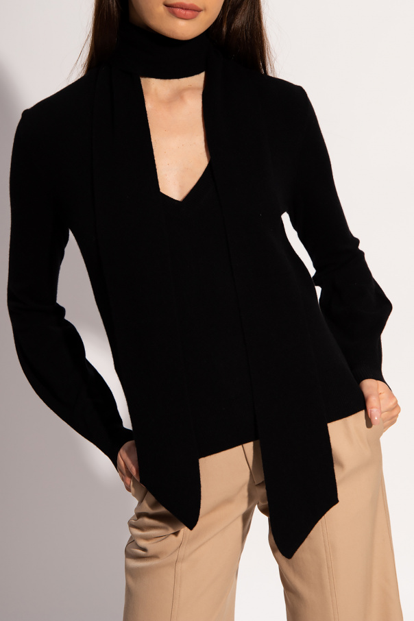 Black sweater with a scarf from Chloé. Crafted from cashmere, this long sleeve design features a V-neck and logo embroidery.